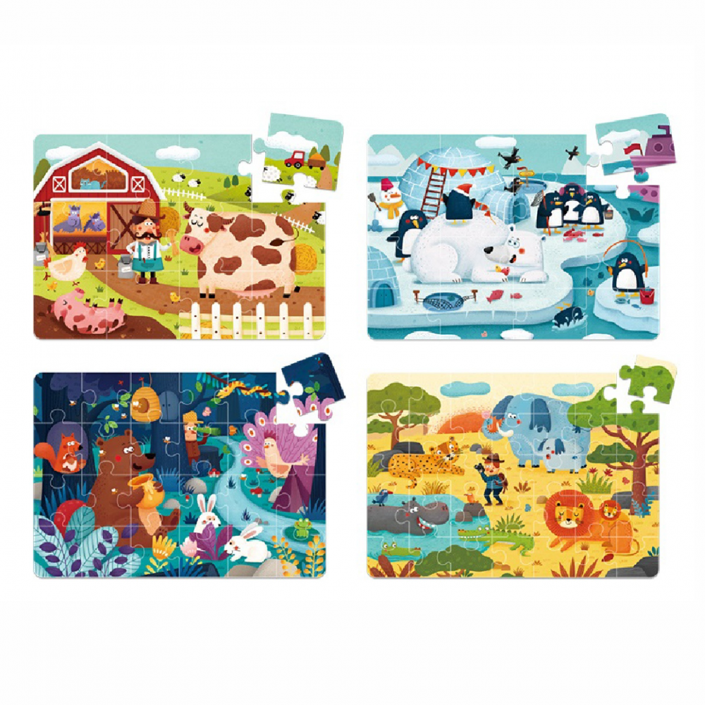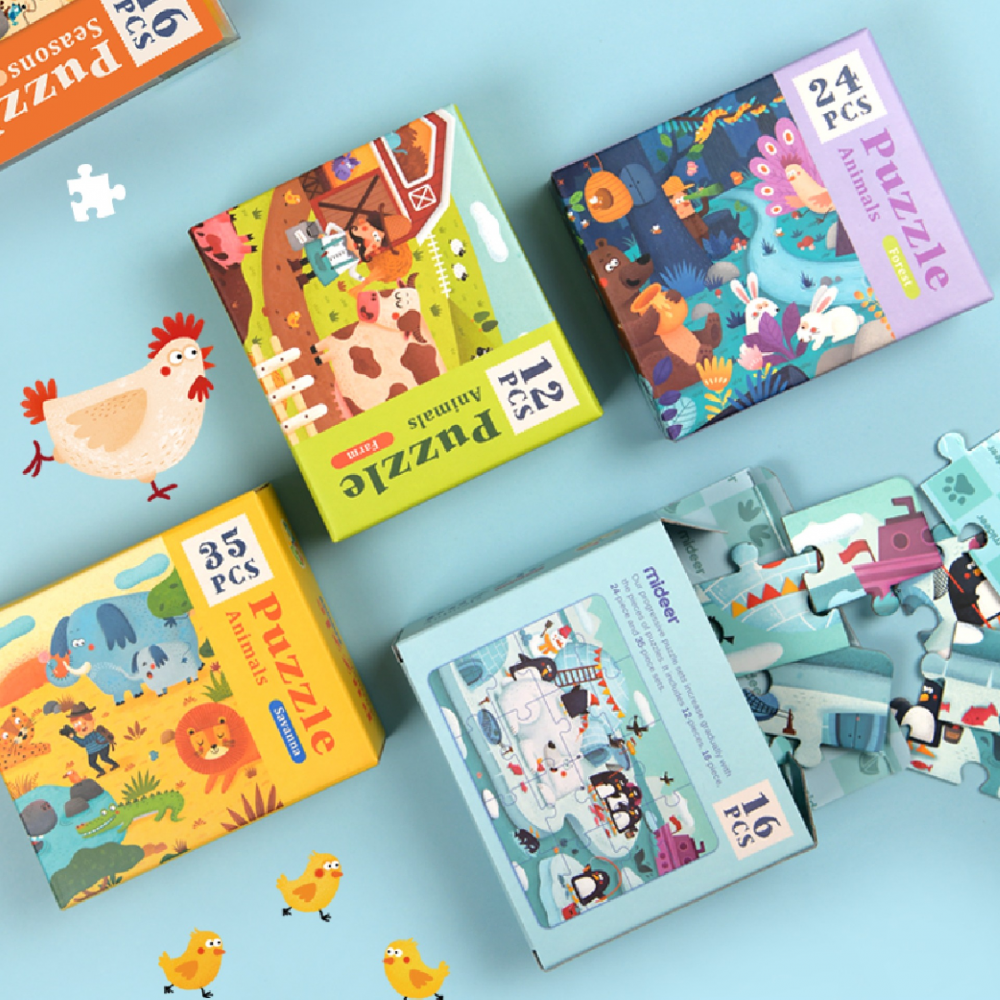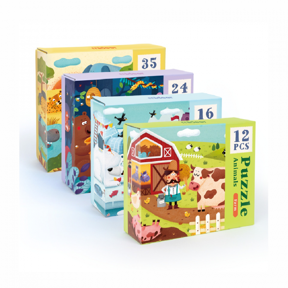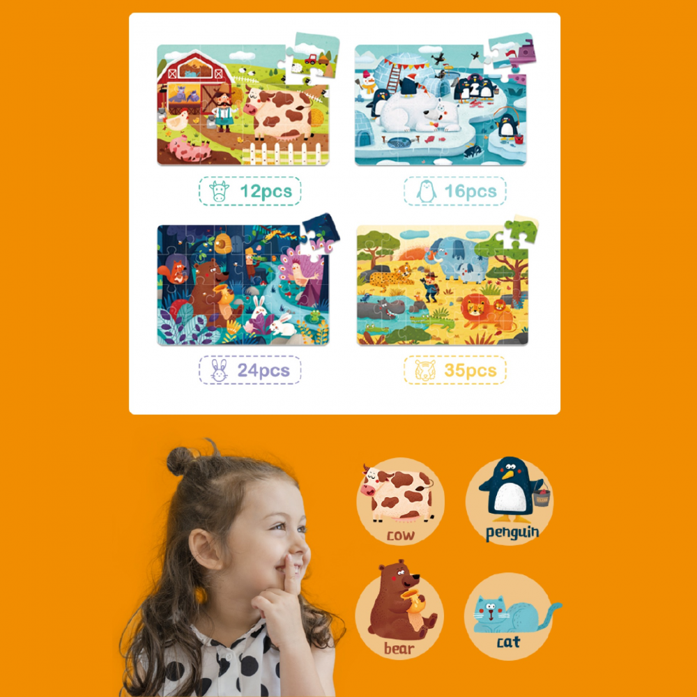Four in one theme puzzle, which 4 types a set with increasing pieces from simple to complex develop children's thinking ability.