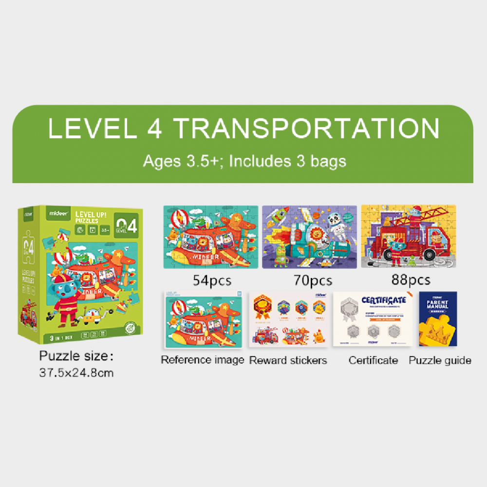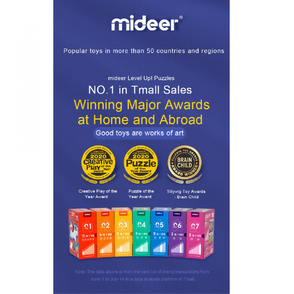 Advanced Puzzle series are fun and educational puzzles with artistic beauty, which will help develop children’s brain potential step by step. Divided into seven levels, this series match children’s mental development, with the aim to enhance their logical thinking, hand-eye coordination, multidimensional cognition as well as develop their concentration. From 2 to 247 pieces, simple to complex, the illustrations on this series, drawn by a French artist and illustrator - Maud Lienard, give children a high-quality aesthetic experience.
