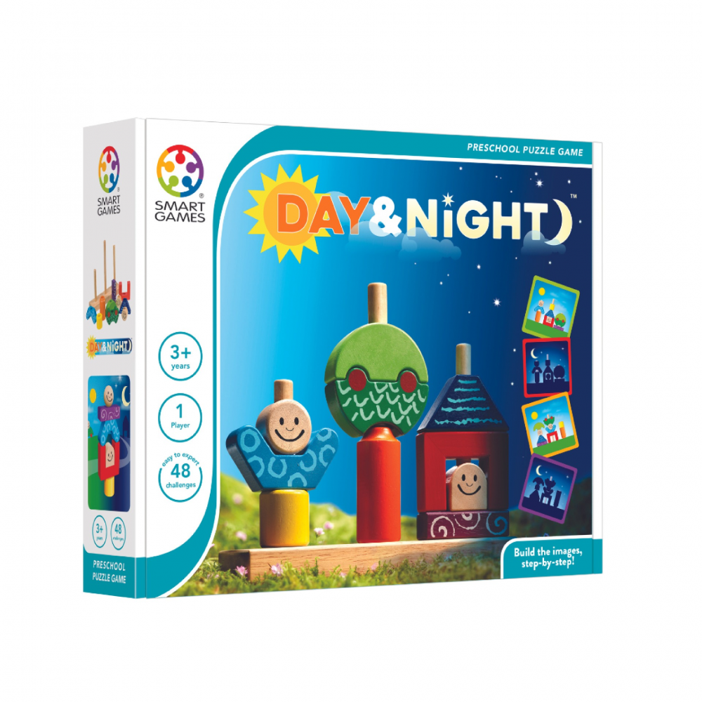 Day & Night is a fun-filled game of logic that evolves in step with your child’s growing skills. Kids arrange and stack the pieces to match the challenges on the included challenge booklet. Just as night follows day, the "day" challenges provide a great start that gradually build up to the more advanced "night" challenges.