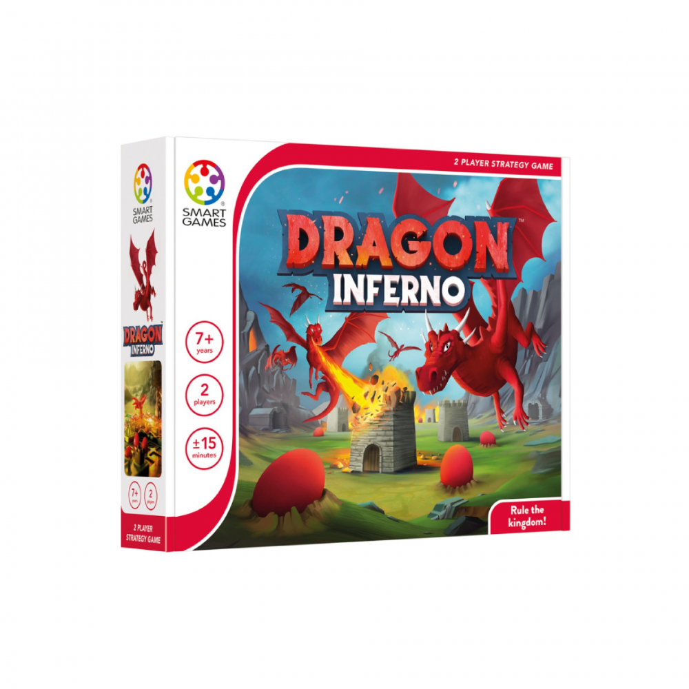 Dragon Inferno challenges players to strategically build the biggest kingdom in the Dragon valley. Watch out! Fire-breathing dragons can turn kingdoms into ashes… but if you’re smart, you can use the dragon’s inferno against your opponent. The player with the biggest kingdom at the end of the game is the winner.