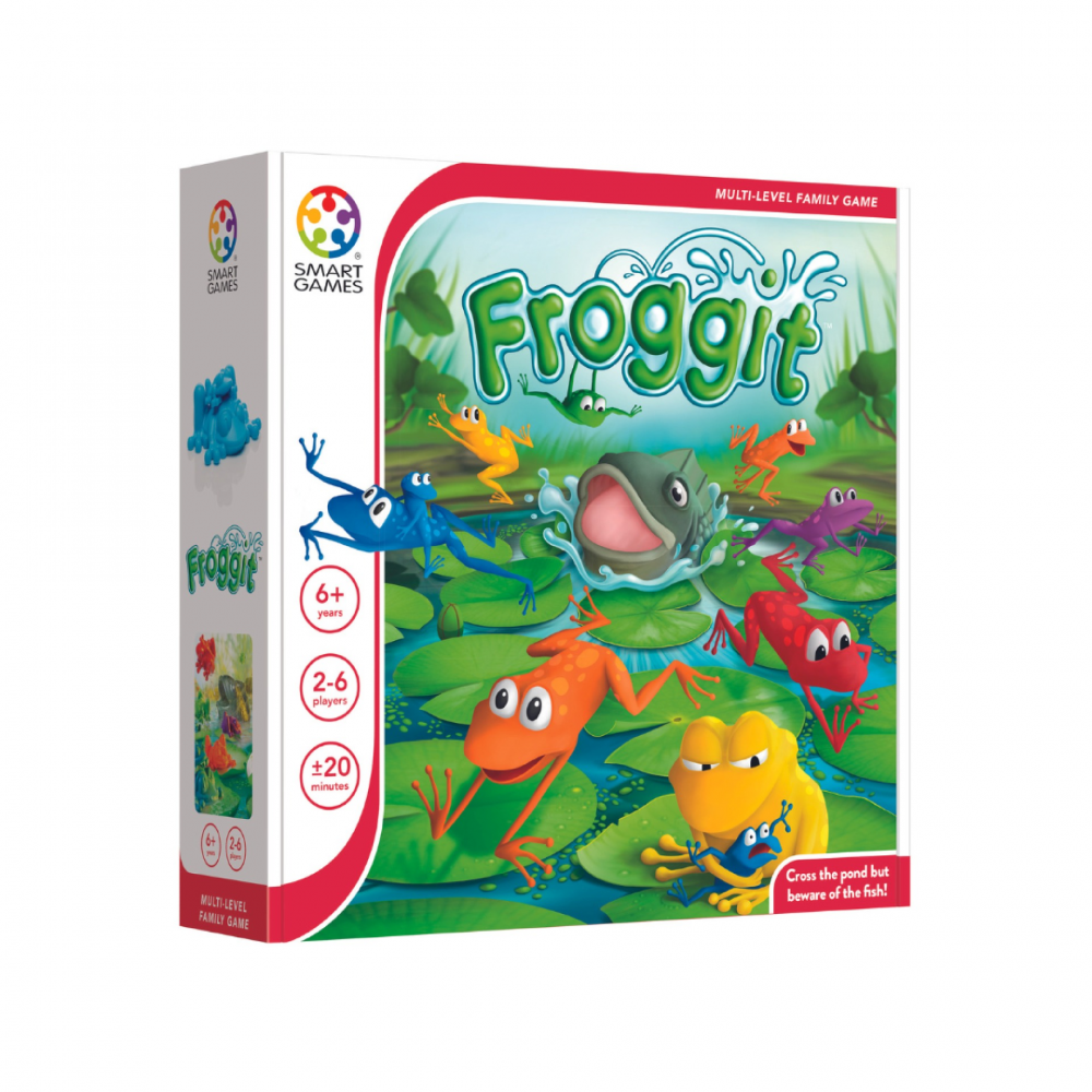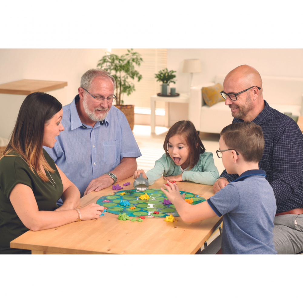 Guide your frogs across the pond and block other players from doing the same. The first player to get their entire frog family to the other side wins the game. But watch out, the fish can scare your frogs back to the start! Flexible thinking, clever planning and the chance to thwart your opponents make this a fun and exciting game for two to six players.