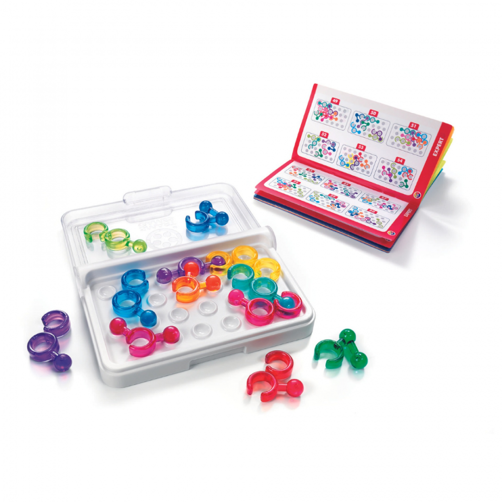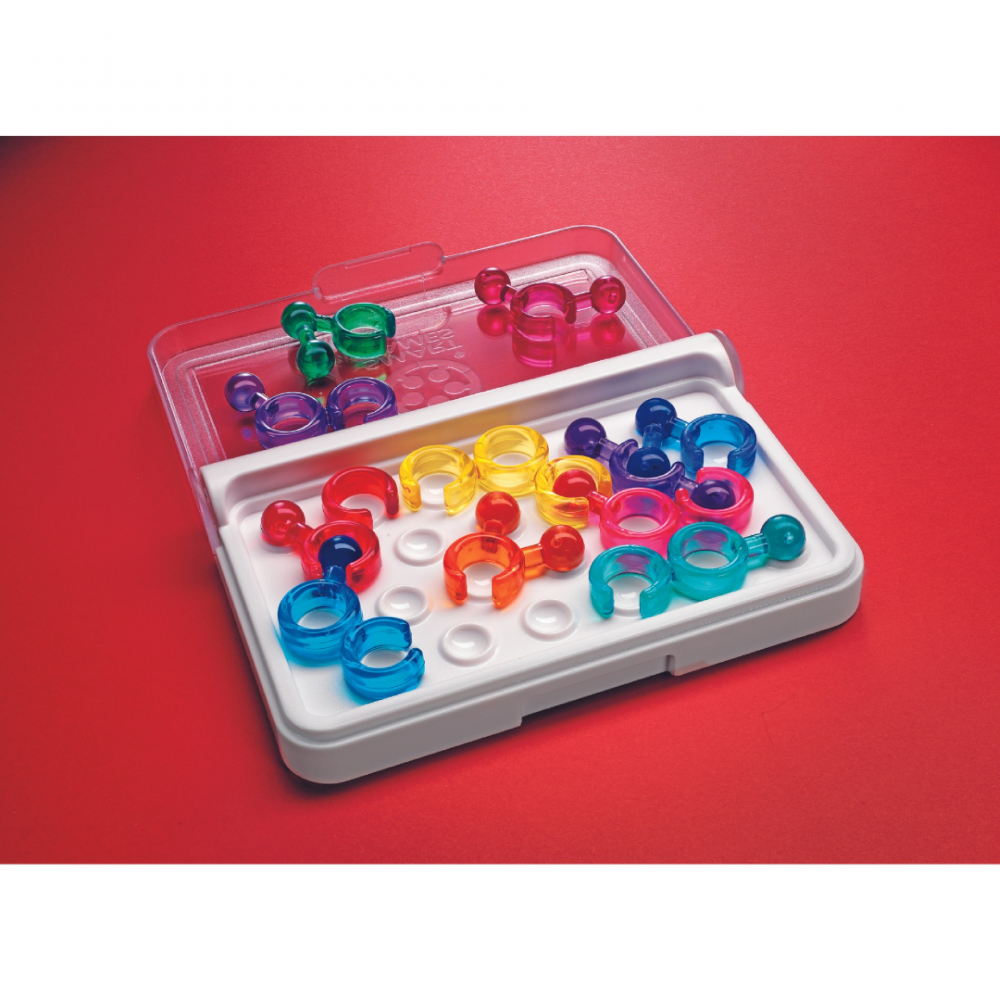 Fit all puzzle pieces on the game board. But watch out! There are 36 puzzle parts but only 24 free places on the game board! Open rings and balls of different puzzle pieces can occupy the same place when you link them the right way.