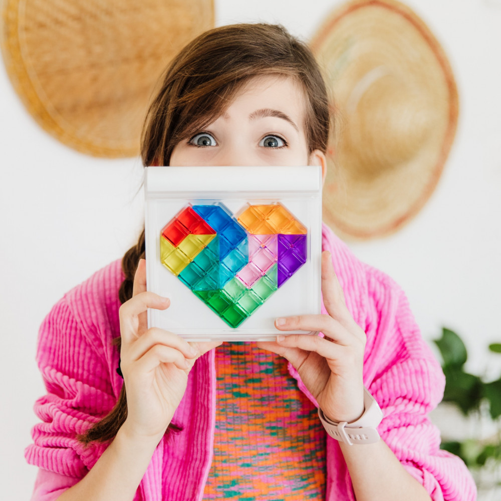 Can you fit all pieces on the game board? This travel-friendly puzzle game comes with a double-sided game board and 120 challenges... for an extended relationship! All you need is love.