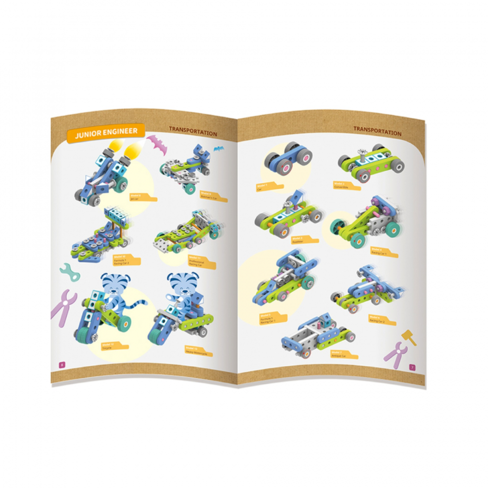 - Build 88 different models – vehicles, construction machines, furniture and buildings – combining them to make the traffic kingdom!