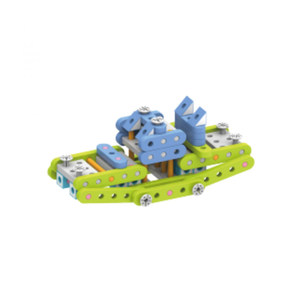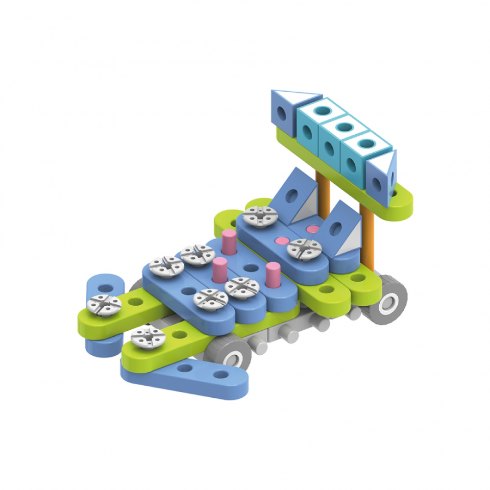 - The Construction Machine set now uses the new, bright macaron, Morandi inspired color system. There are 88 different models to build centered around themes including land, sea, and air vehicles; animals, architecture, robots, and furniture. Included, are four basic tools, a hammer, screwdriver, clamp, and wrench. Through the process of assembling and reconfiguring the blocks, children will learn to distinguish important aspects of appearance and structure in everyday life. It is intended to develop a sense of shape, color and imagination.