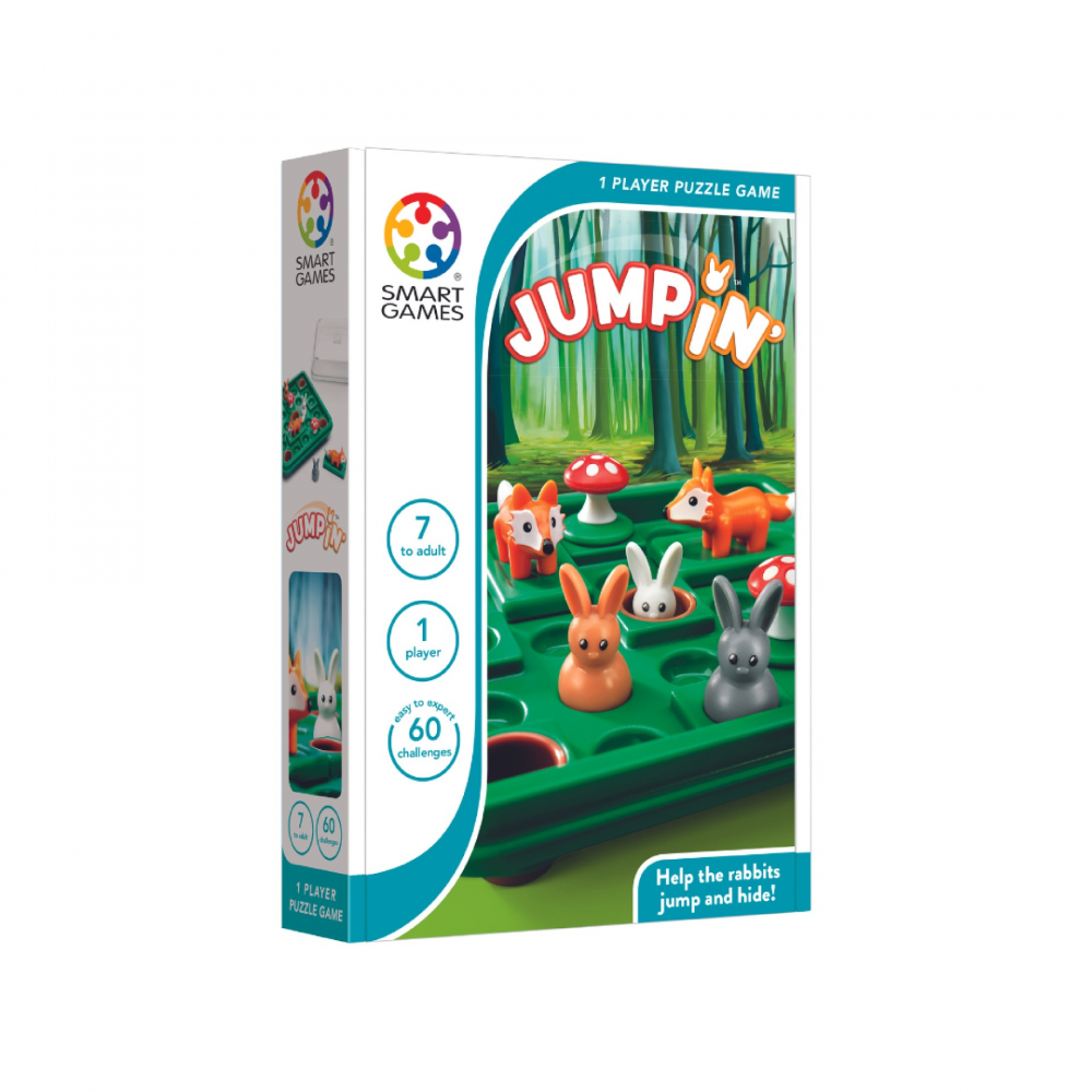 Can you help the rabbits jump to safety? Use other rabbits, mushrooms and even the moving foxes to jump around and hide the rabbits in their holes. A great travel game that features 60 challenges and a portable carrying case.