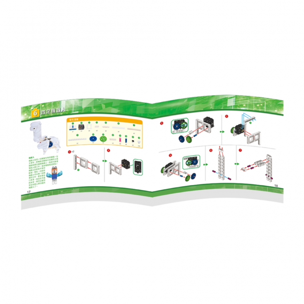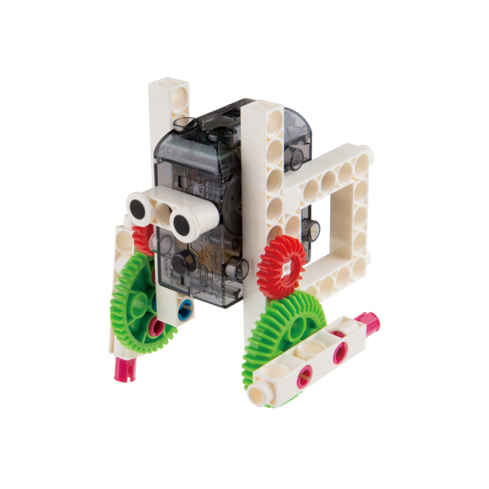 Each model is completed by a combination of following a design and then adapting that design. Using scientific principles, children will naturally develop the ability to face challenges and develop solutions. The unique infrared remote control system and motor box allows children to experience the fun of remote control robots, and the colorful paper designs bring the models to life as they move.