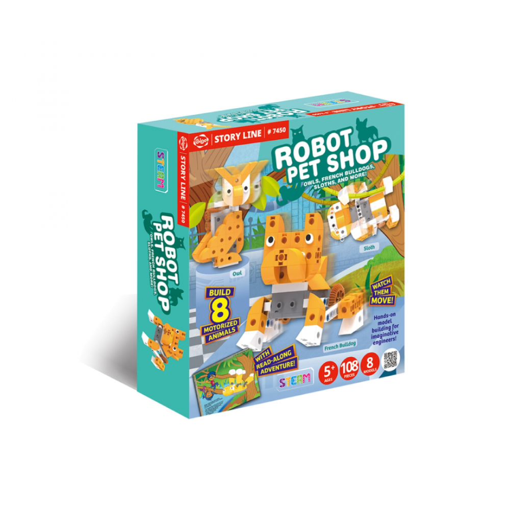 Robot Pet Shop provides an engaging way to teach simple engineering concepts to young children, allowing parents, teachers, and caregivers to lay the groundwork for strong STEAM-related skills and comprehension at an early age. Model building and experiments develop fine motor skills, mechanical engineering skills, visual-spatial skills, and reasoning and concept development skills.