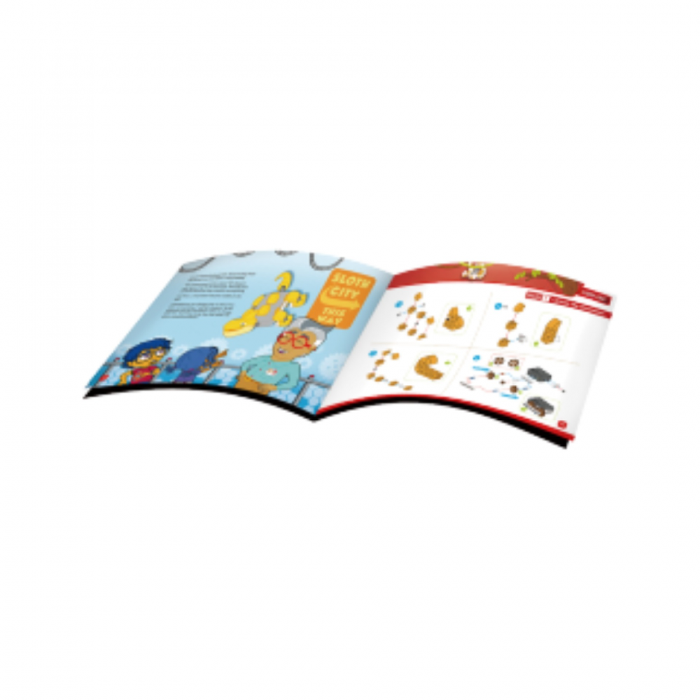 This story takes the characters to a robotic pet shop where they encounter all sorts of cute robotic pets, including an owl, French bulldog, sloth, panda, chameleon, cat, turtle, and rabbit. As they follow the story, kids can build models of these eight robots and experiment with them to see how each one uses the battery-powered motor and mechanical parts to move in a different way. Large, cubic plastic building pieces make it easy for small hands to put the models together.