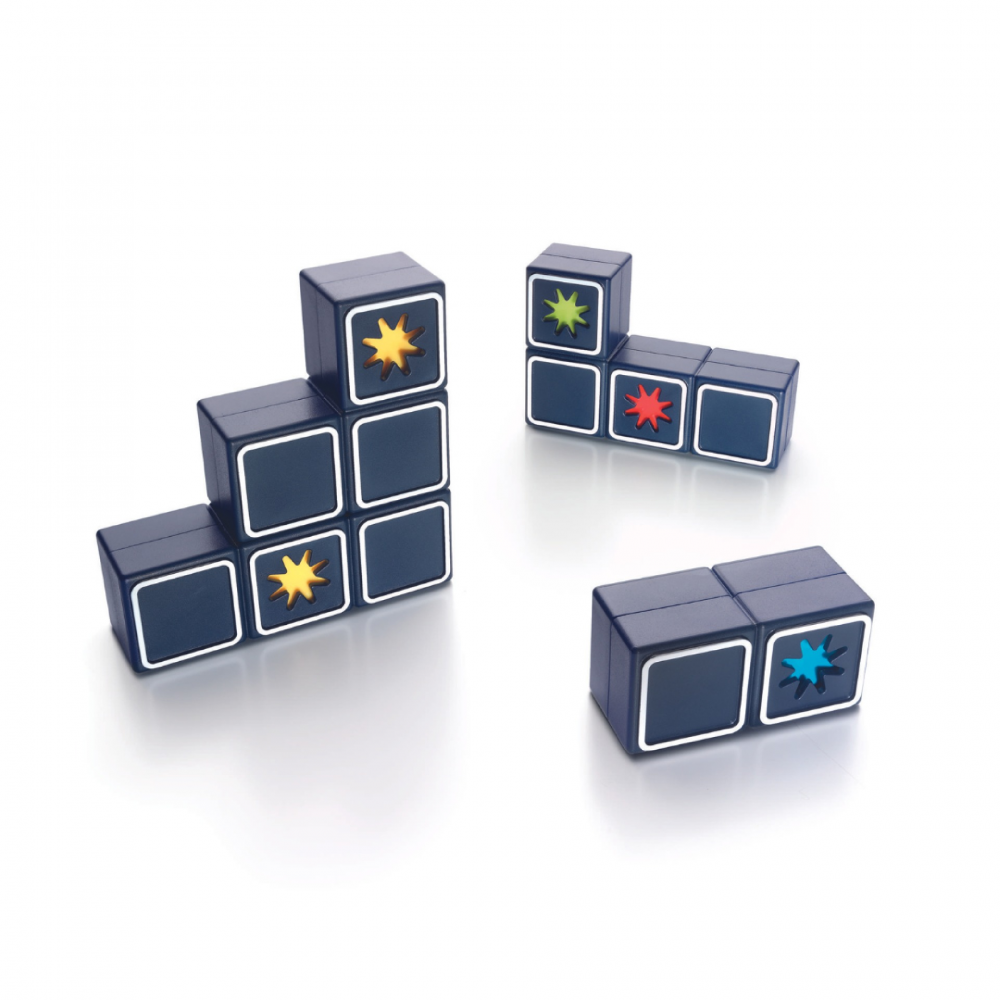 - 4 double-sided blocks with coloured stars, booklet with 80 challenges and solutions