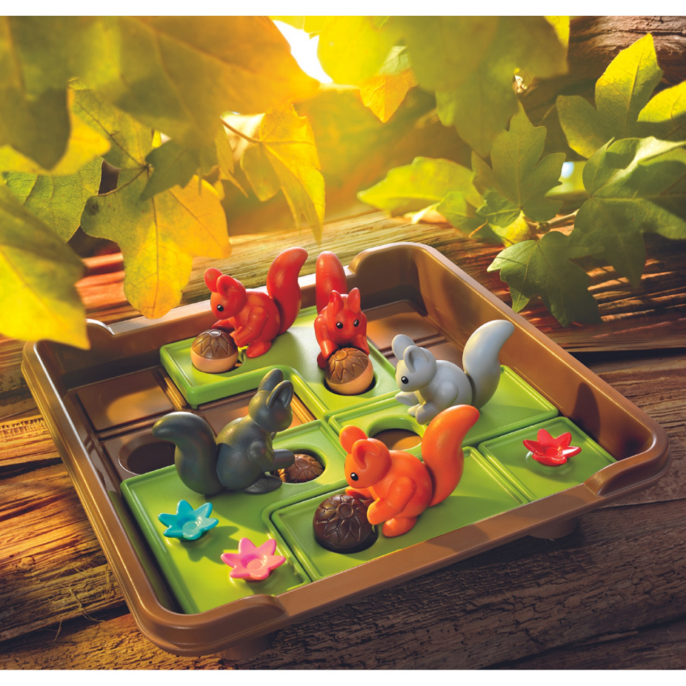 Discover this extra-large version of our global best-selling Compact game Squirrels Go Nuts! Can you hide all nuts, except the ‘black nut’, on the 4 times larger game board?