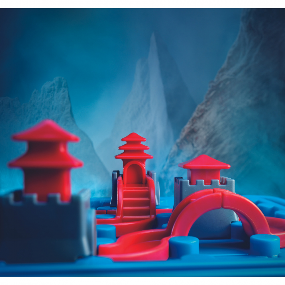 - Game board, 3 temples, 3 bridges, 4 roads, and a booklet with 80 challenges and solutions