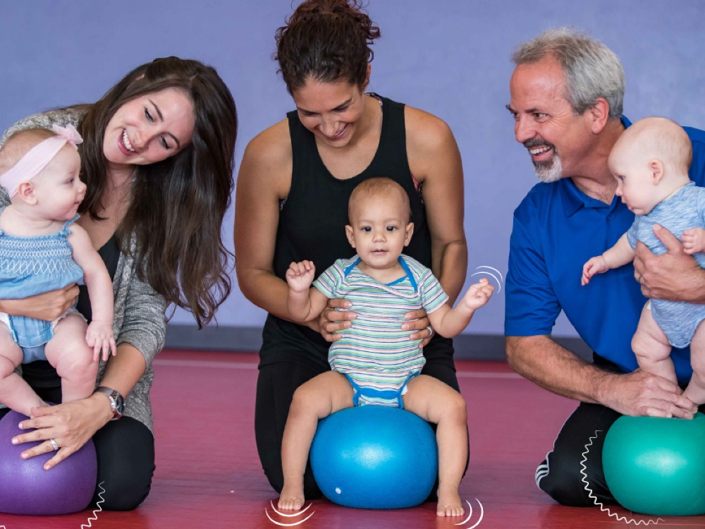 » Your baby will engage in exercises that help develop the muscles necessary to sit-up, crawl, and stand
