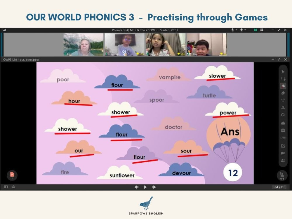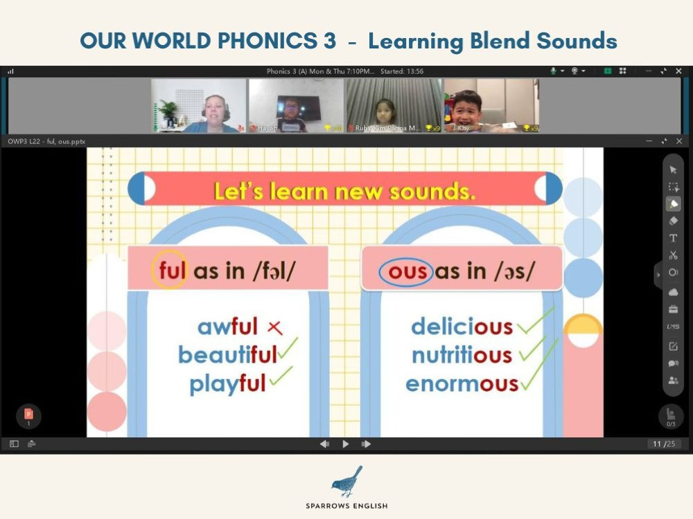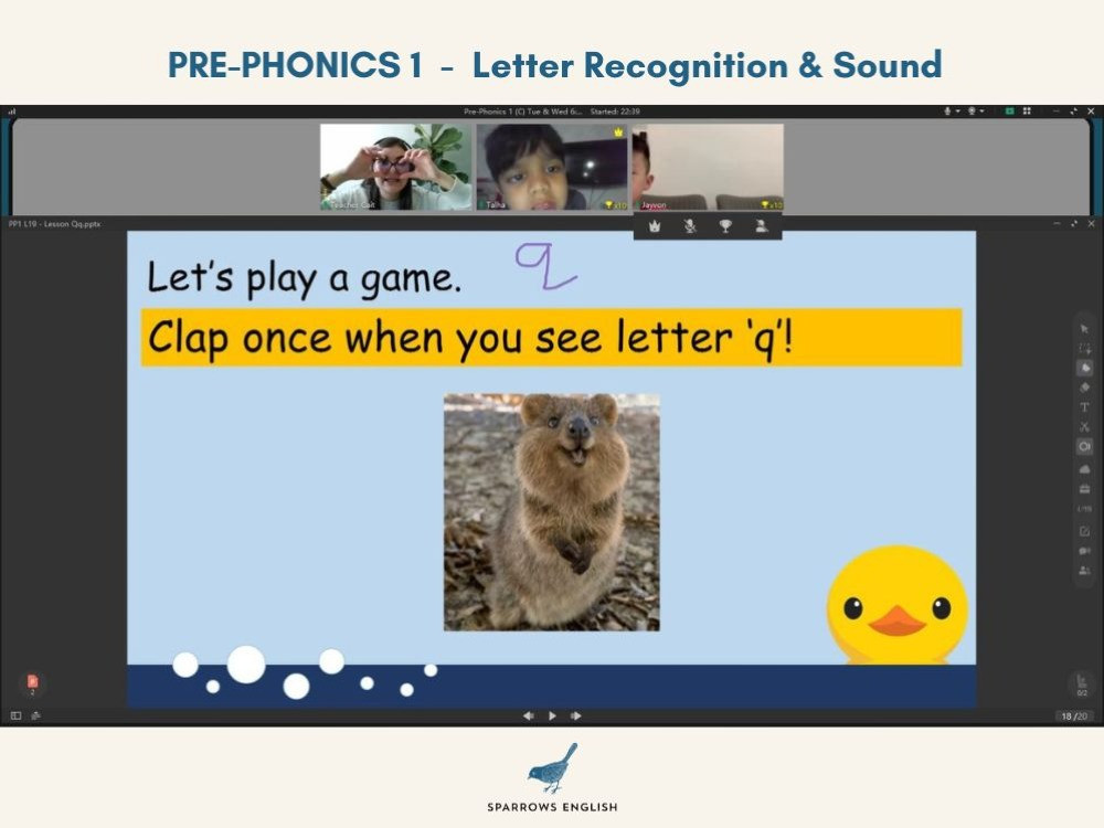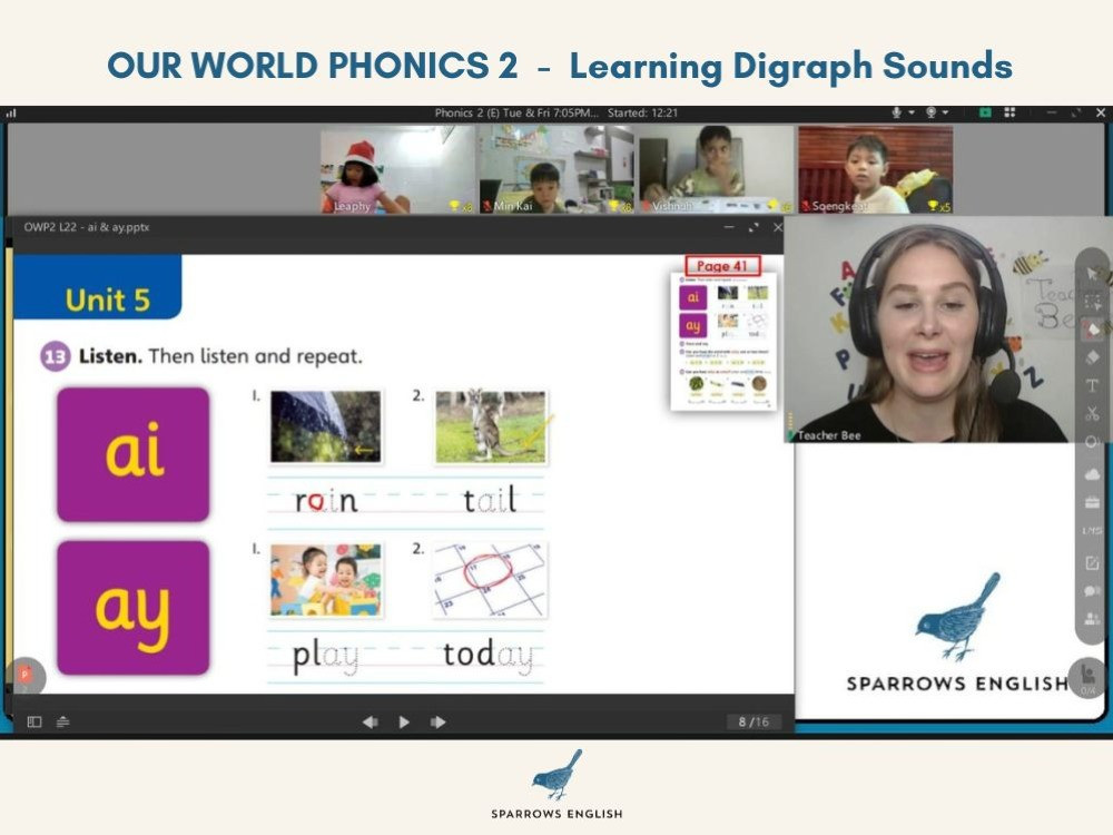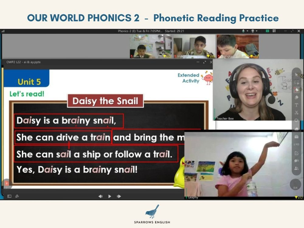 Taught by qualified and experienced online native English teachers, this course focuses on specific phonics-related learning areas, such as: